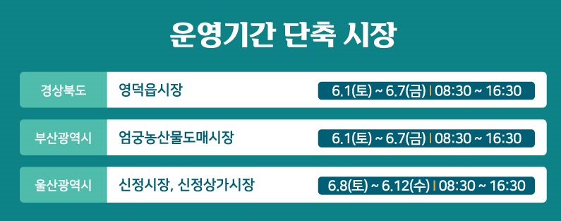 ◆ 기간: 6. 1(토) ~ 6. 12(수), 12일간/ *시장별 상이